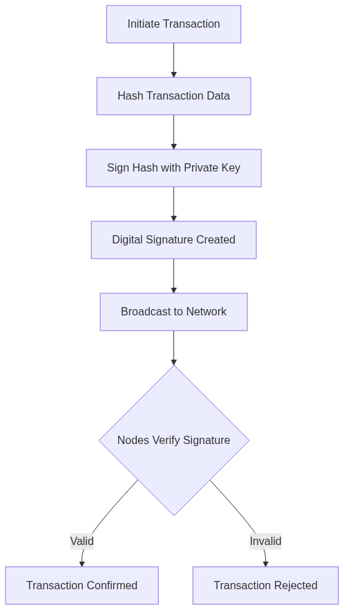 5. Network nodes verify: does this signature match the public key for this address? If yes — valid. If no — rejected.